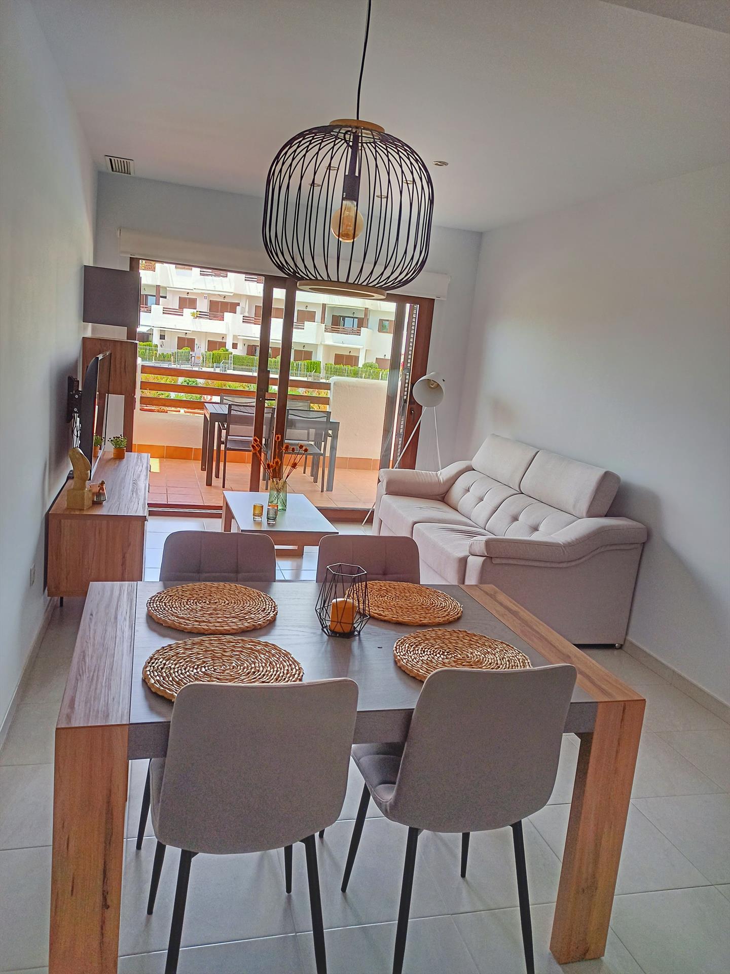 Modern en vrolijk appartement in San Juan de los Terreros, Andalusië, Spanje met gemeenschappelijk zwembad voor 4 personen. Het appartement ligt in een strandresort, in een kust- en woonwijk, dicht bij supermarkten en op 500 meter van het strand.Het appartement heeft 2 slaapkamers en 1 badkamer. De accommodatie biedt een gemeenschappelijke tuin met gazon en bomen en een prachtig uitzicht op de tuin. Het comfort en de nabijheid van het strand, gelegenheden om te winkelen, sportactiviteiten, uitgaansgelegenheden, bezienswaardigheden en cultuur maken dit een prima appartement om je vakantie in Spanje door te brengen met familie of vrienden.