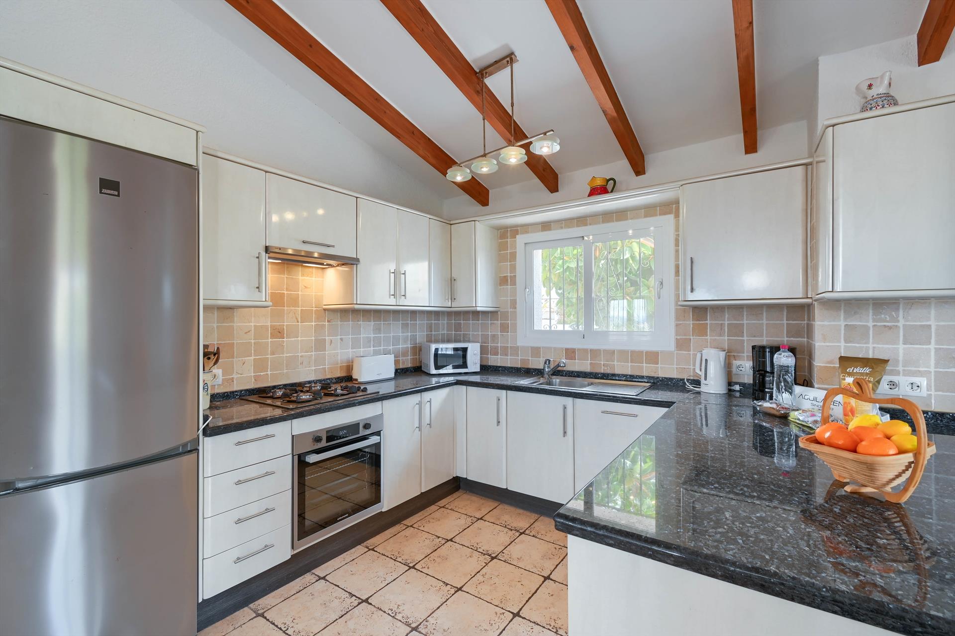 Grote en comfortabele villa in Javea, aan de Costa Blanca, Spanje met privé zwembad voor 6 personen. Het huis ligt in een residentiële strandomgeving. De villa heeft 3 slaapkamers en 3 badkamers, verdeeld over 2 verdiepingen. De accommodatie biedt privacy, een mooie tuin met gazon, grind en bomen, een mooi zwembad en mooi uitzicht op de vallei en de bergen. De nabijheid van het strand, gelegenheden om te winkelen, sportactiviteiten, uitgaansgelegenheden, uitgaansgelegenheden, bezienswaardigheden en cultuur maakt dit een geschikte villa om uw vakantie in Spanje door te brengen met familie of vrienden en zelfs uw huisdieren.