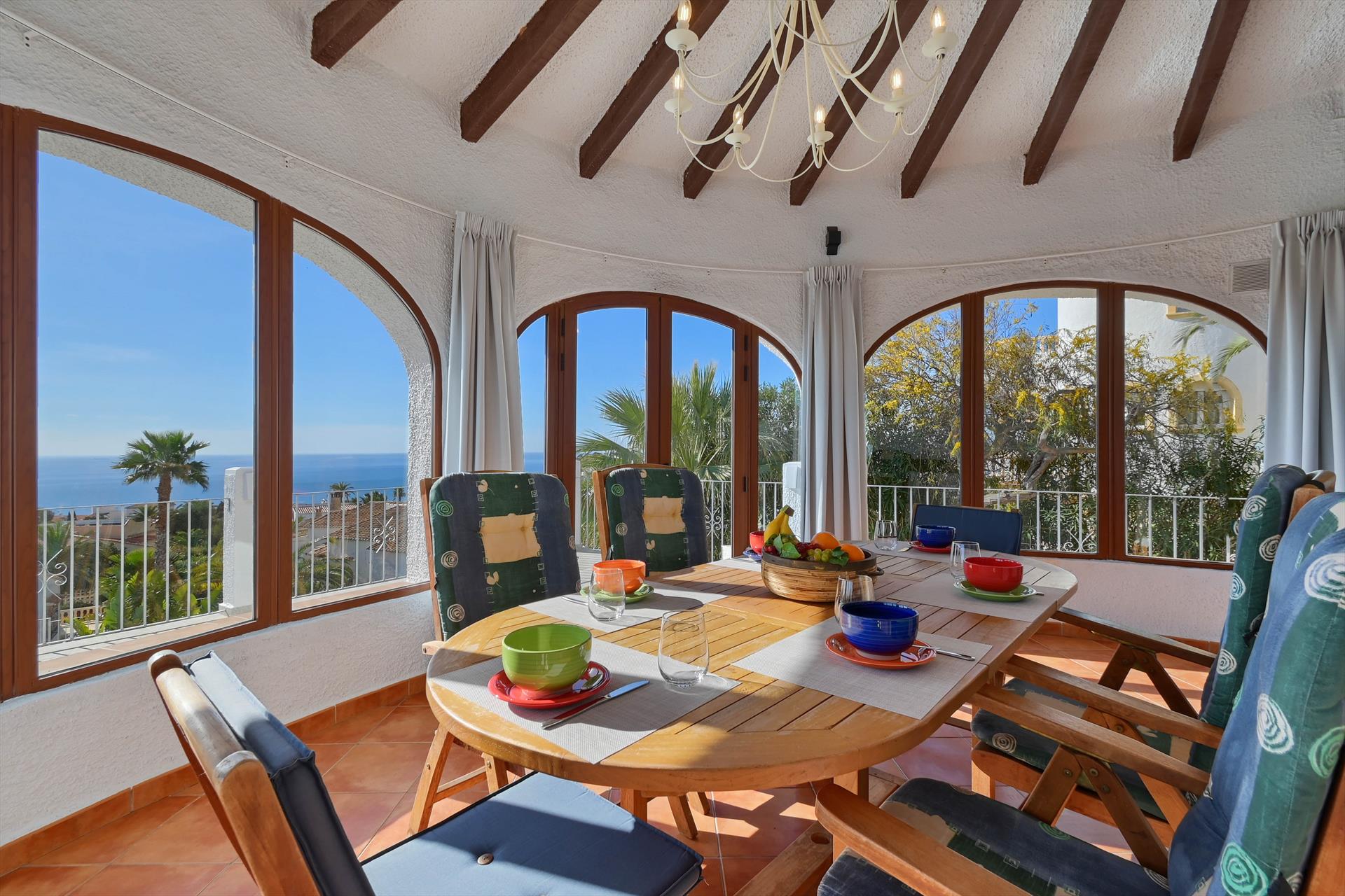 Groot en comfortabel vakantiehuis met privé zwembad in Javea, Costa Blanca, Spanje voor 10 personen. De woning ligt in een residentiële omgeving en op 2 km van het strand van El Arenal, Javea.De...