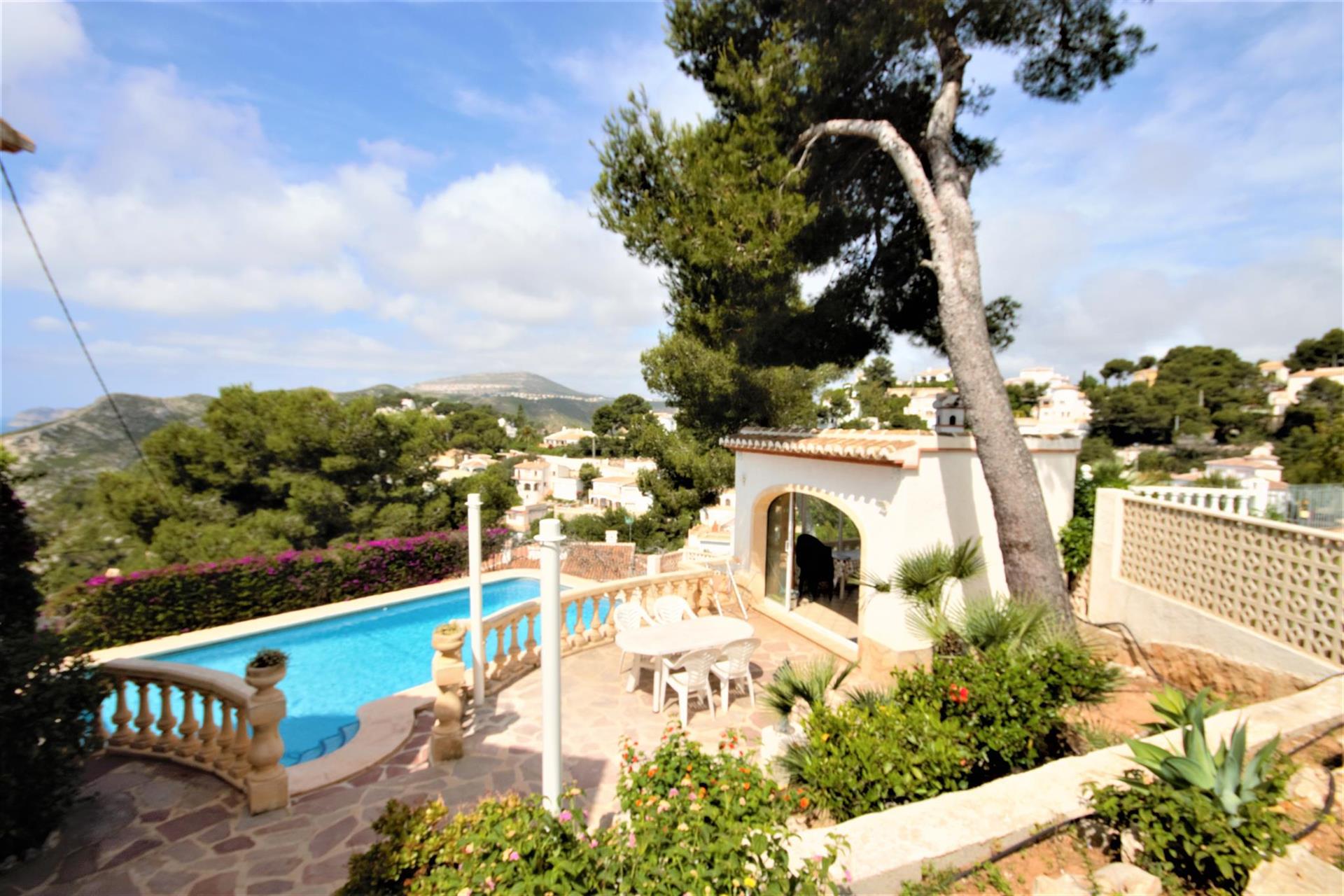 Prachtige en vrolijke villa met privézwembad in Javea, aan de Costa Blanca, Spanje, voor 8 personen. De villa ligt in een kust- en woonwijk.De villa heeft 4 slaapkamers en 3 badkamers, verdeeld over 2 verdiepingen. De accommodatie biedt privacy, een prachtige tuin met gras, grind en bomen, een heerlijk zwembad en een prachtig uitzicht op zee. Het comfort en de nabijheid van het strand maken dit een fijne villa om uw vakantie te vieren met familie of vrienden, en zelfs uw huisdieren.