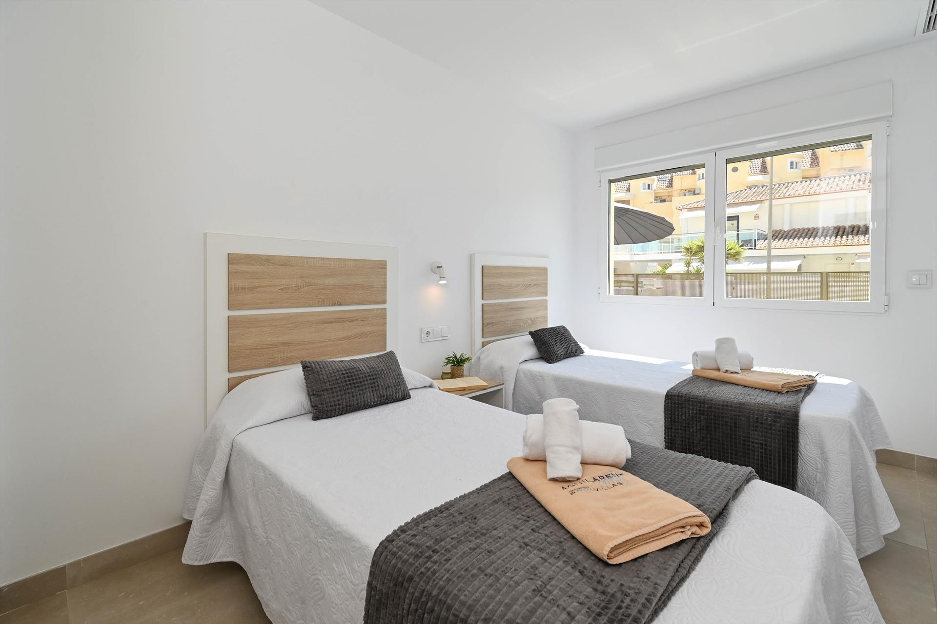 Mooi en comfortabel appartement in Denia, Costa Blanca, Spanje, met een gemeenschappelijk zwembad voor 4 personen. Het appartement ligt in een woonwijk aan het strand, dicht bij supermarkten, op 25 m van Playa de L'Estanyo, 4 km van El Vergel en 25 m van de Middellandse Zee. Het appartement heeft 2 slaapkamers en 2 badkamers. De nabijheid van het strand, winkels, sportactiviteiten en het nachtleven maakt dit een ideaal appartement om uw vakantie in Spanje door te brengen met familie, vrienden en zelfs uw huisdieren. Buitenkant van het appartement Gemeenschappelijk zwembad Buitendouche Gemeenschappelijke parkeerplaats