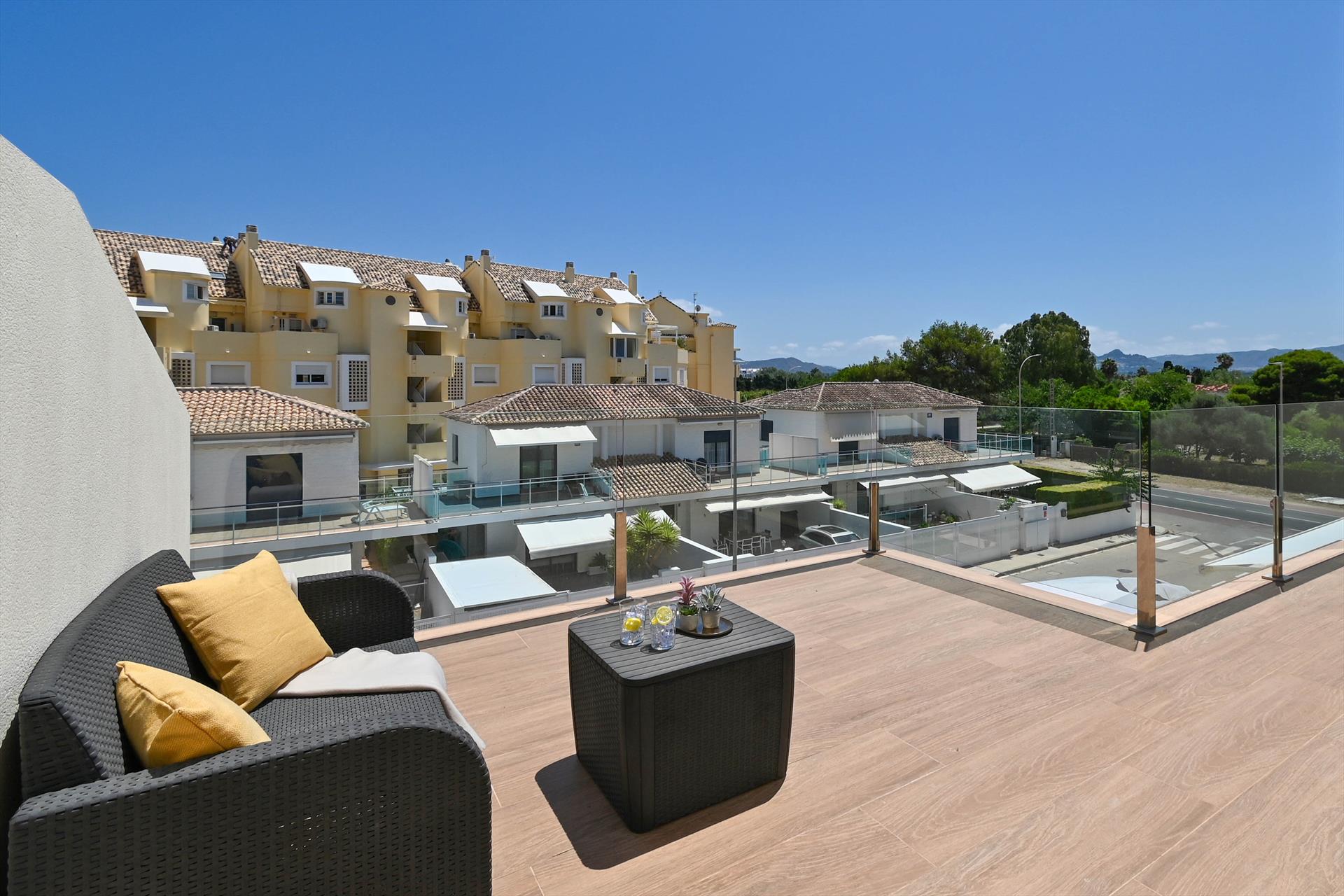 Mooi en comfortabel appartement in Dénia, Costa Blanca, Spanje met gemeenschappelijk zwembad voor 6 personen.Het appartement ligt in een woonwijk aan het strand, dicht bij supermarkten, op 25 meter van het Playa de L'Estanyo strand, 4 kilometer van El Vergel en 25 meter van de Middellandse Zee.Het appartement heeft 3 slaapkamers en 2 badkamers, verdeeld over 2 verdiepingen. De nabijheid van het strand, winkels, sportactiviteiten en uitgaansgelegenheden maakt dit een ideale plek om uw vakantie in Spanje door te brengen met familie of vrienden.Buitenkant van het appartementGemeenschappelijk zwembadBuitendoucheGemeenschappelijke parkeerplaats