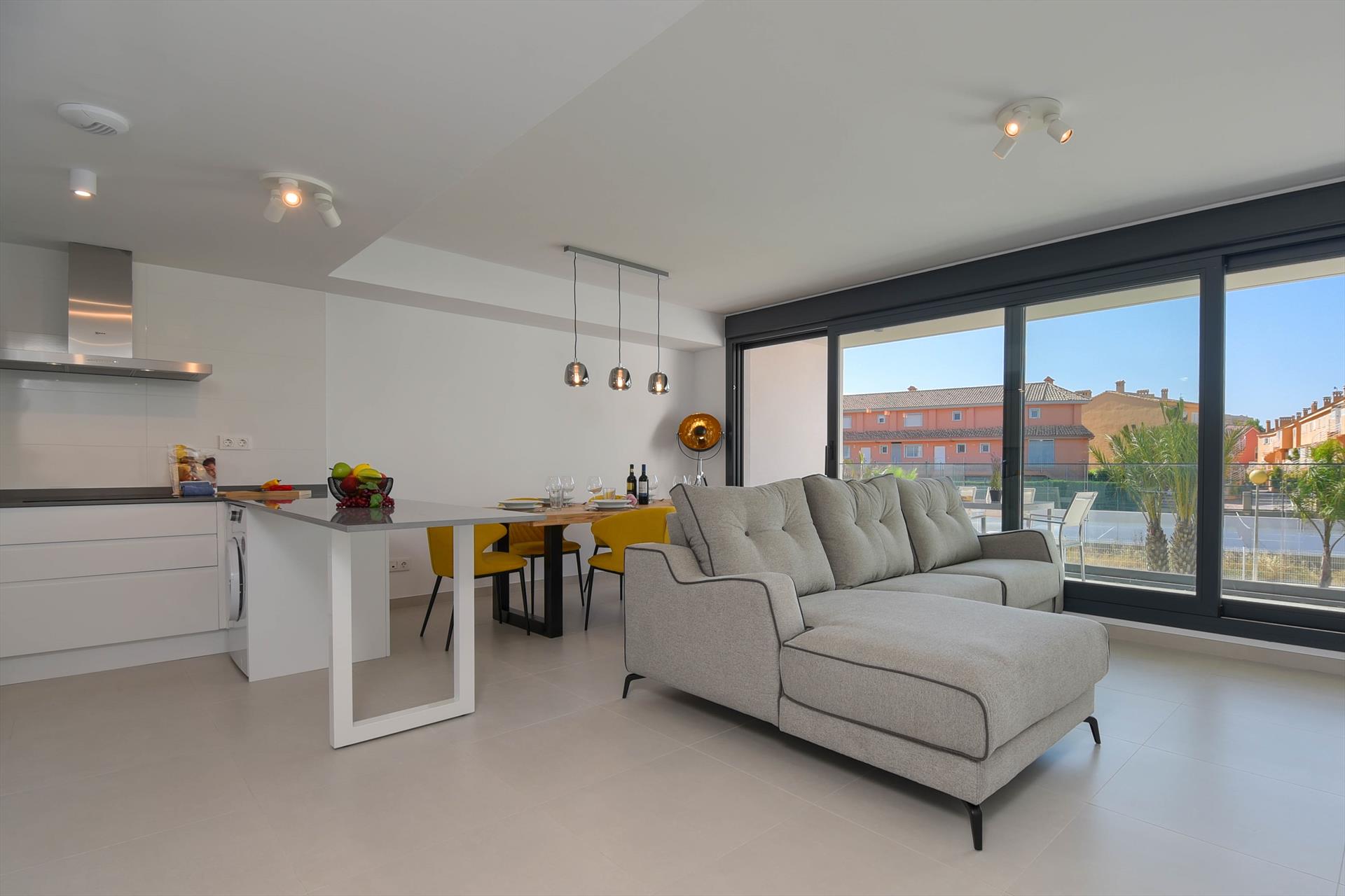 Modern en comfortabel appartement met gemeenschappelijk zwembad in Javea, Costa Blanca, Spanje voor 6 personen. De woning ligt in een residentiële omgeving, dichtbij restaurants en bars, winkels, supermarkten en een tennisbaan, op 200 m van het strand van Montañar I en op 0,2 km van Mediterráneo.De woning heeft 3 slaapkamers en 2 badkamers. De accommodatie biedt veel privacy, een gemeenschappelijke tuin met gazon en bomen en prachtig uitzicht op het zwembad en de tuin. Het comfort en de nabijheid van het strand, gelegenheden om te winkelen, mogelijkheden om te sporten, amusement, uitgaansgelegenheden, bezienswaardigheden en cultuur maken dit een ideaal appartement voor uw vakantie in Spanje met familie of vrienden.
