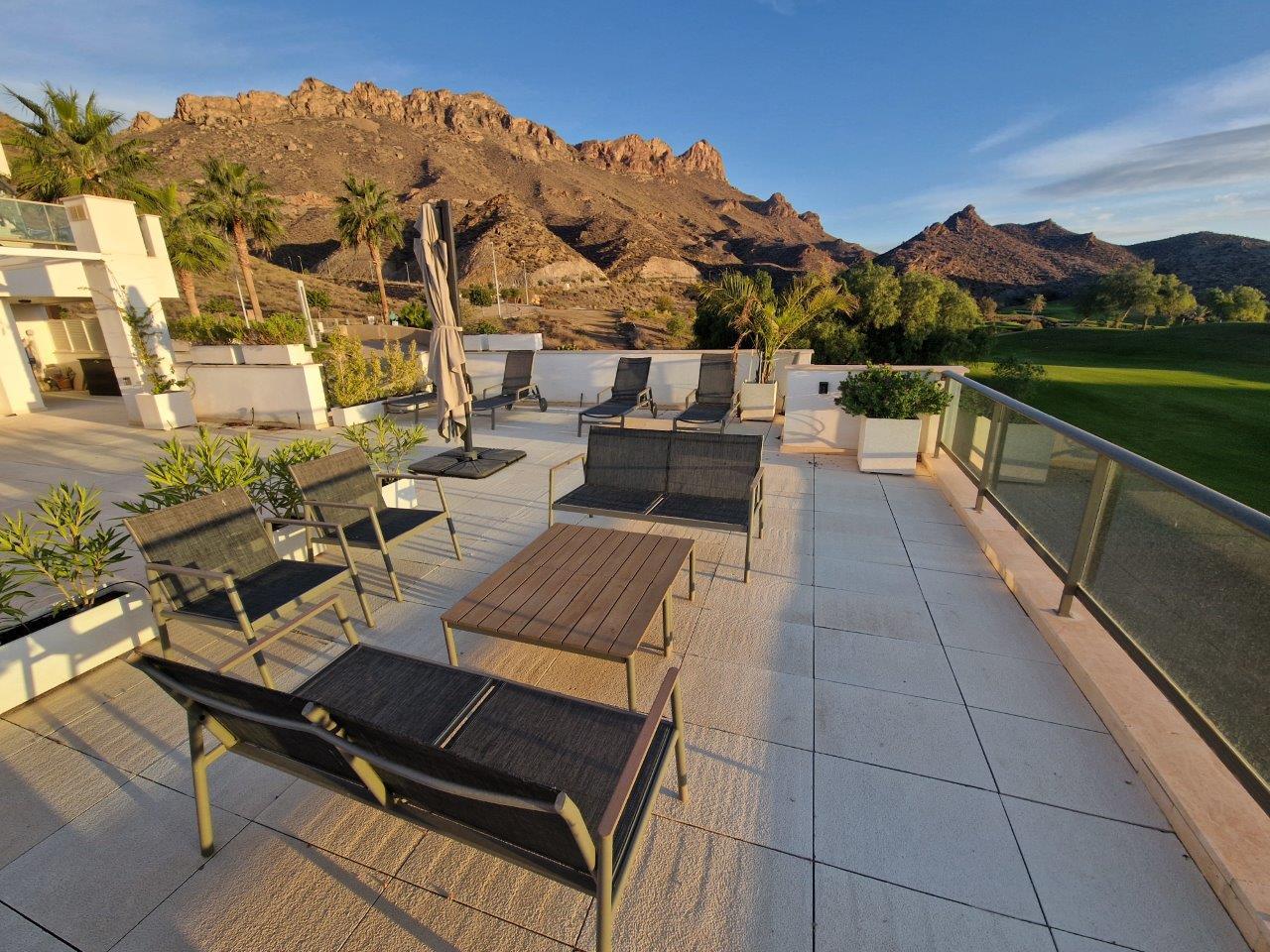 Mooi en comfortabel appartement in Pulpi, Andalusië, Spanje voor 4 personen. Het appartement ligt in een vakantiecomplex met bar en restaurant en op 3 km van het strand Playa la Entrevista.De accommodatie biedt een gemeenschappelijke tuin met gazon, prachtig uitzicht op de golfbaan en schitterende uitzichten op de baai, de zee, de vallei, de bergen, het zwembad en de tuin. De nabijheid van het strand, sportactiviteiten, bezienswaardigheden en cultuur maakt dit appartement tot een uitstekende plek om uw vakantie in Spanje met familie of vrienden door te brengen.Buitenkant van het appartementGemeenschappelijk zwembadGemeenschappelijke tuin met gazonTerrasZit- en eethoek buiten2 privé overdekte parkeerplaatsen en gemeenschappelijke parkeerplaatsGemeenschappelijke faciliteiten / diensten tegen extra betalingPadelbaan