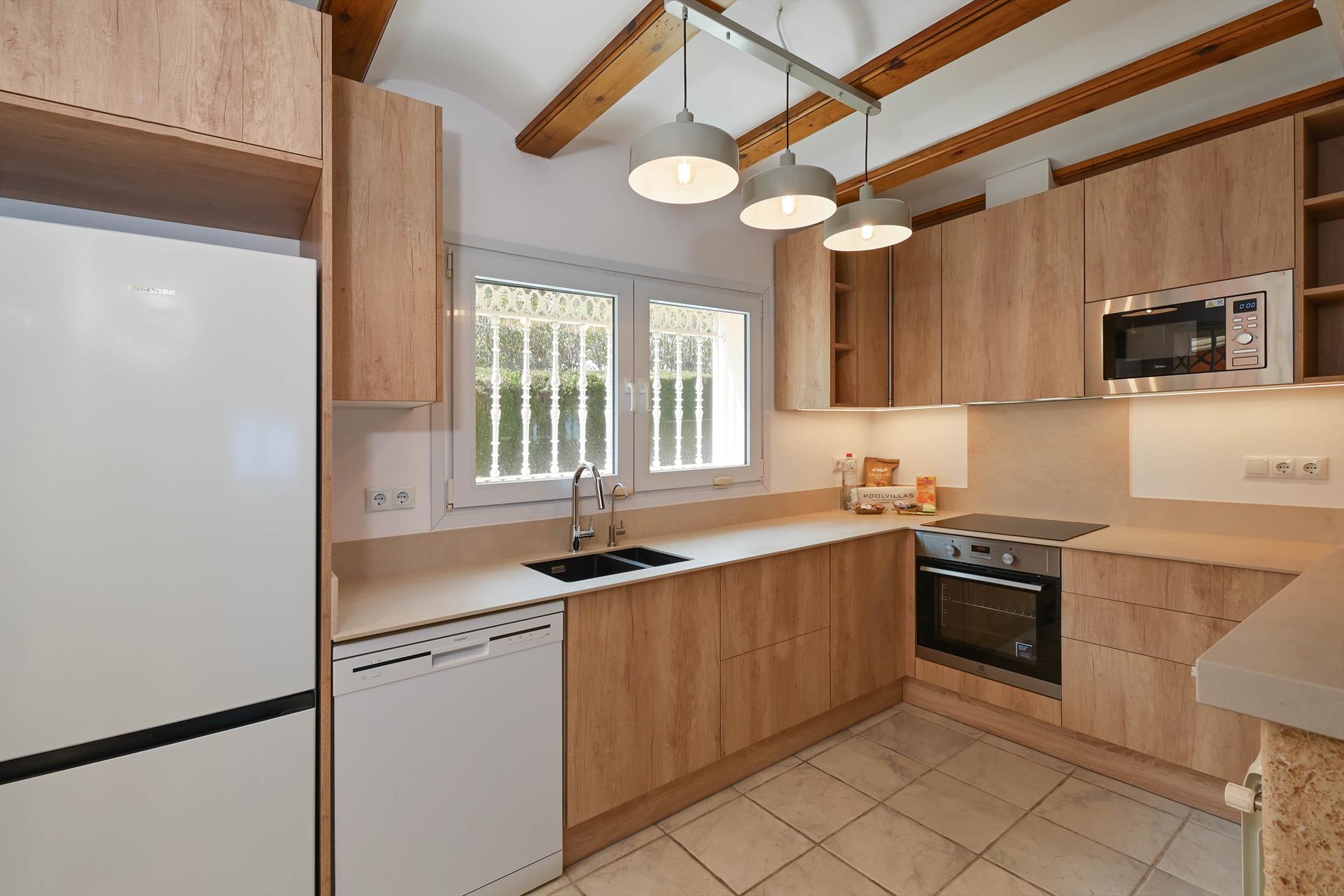 Prachtige en charmante villa met privézwembad in Denia, Costa Blanca, Spanje voor 4 personen. Het huis is gelegen in een residentiële en bergachtige strandomgeving en ligt op 3 km van het strand Marineta Casiana, Denia. Het huis heeft 2 slaapkamers en 2 badkamers. De accommodatie biedt privacy, een prachtige gazontuin met bomen, een heerlijk zwembad en schitterend uitzicht op de zee, de vallei en de bergen. Het comfort en de nabijheid tot het strand, sportactiviteiten, uitgaansgelegenheden, bezienswaardigheden en cultuur maken dit tot een ideale villa om uw vakantie in Spanje door te brengen met familie of vrienden.Interieur van de villawoon-/eetkamer met airconditioning en televisieopen haard in de woonkamer (hout)2 slaapkamers en 2 badkamerswasruimte met wasmachine en droogtrommelKeukenopen keuken met elektrische kookplaat, elektrische oven, magnetron, vaatwasser, koelkast-vriezer, koffiezetapparaat, waterkoker, broodrooster en sapcentrifugeSlaapkamers en badkamersairconditioned slaapkamer met tweepersoonsbed (190 bij 140 cm) en ventilatorairconditioned slaapkamer met 2 eenpersoonsbedden (190 bij 90 cm), ventilator en en-suite badkameren-suite badkamer met enkele wastafel, douche, bidet en toiletbadkamer met enkele wastafel, douche en toiletExterieur van de villalagunevormig privézwembad van 6m x 3m en 2m diepprachtige gazontuin met bomen en tuinmeubilair met ligbedden2 overdekte terrassenbuitenkeuken en barbecuebuitendouchebuiten zitgedeelte en buiten eethoekprivé overdekte parkeerplaats en privé parkeerplaatsMeer informatiedichtstbijzijnde stad: Denia (binnen 5 kilometer van de villa)dichtstbijzijnde rivier of kust: Middellandse Zee, Denia (binnen 3 kilometer van de villa)dichtstbijzijnde strand: Marineta Casiana, Denia (binnen 3 kilometer van de villa)dichtstbijzijnde haven: La Marina, Denia (binnen 3 kilometer van de villa)dichtstbijzijnde park: Montgo, Denia (binnen 3 kilometer van de villa)dichtstbijzijnde luchthaven: Alicante (binnen 100 kilometer van de villa)tweede dichtstbijzijnde luchthaven: Valencia (> 100 kilometer)roken is niet toegestaanhuisdieren zijn niet toegestaanDe accommodatie is zeer geschikt voor families met kinderenFaciliteiten en diensten inbegrepen in de huurprijs van de villainternet (WiFi)stofzuiger en strijkijzer met strijkplankbedlinnen en handdoekenreceptieservice en 24-uurs noodserviceluchtverwarming en airconditioningFaciliteiten en diensten tegen extra kostenextra bed en kinderbed/wieg (op aanvraag)Vermaak en recreatieve activiteiten voor uw vakantie in Denia, Costa Blancabar, boulevard (Las Marinas en Denia) (binnen 5 kilometer van het huis)Bezienswaardigheden en cultuur in Denia, Costa Blancamuseum (Histórico de Denia), kerk (Portal de la Vila, Denia), kasteel (Portal de la Vila, Denia), monument (Pueblo de Denia), architectonisch gebouw (Centro de Denia) en historisch plaats (Histórico de Denia) (binnen 5 kilometer van de accommodatie)ruïne (Molinos de Viento en Javea) (binnen 10 kilometer van de accommodatie)Sportentennis, wandelen, mountainbiken, fietsen, klimmen, kanoën, kajakken, vissen, duiken, snorkelen, surfen, windsurfen en waterskiën (binnen 5 kilometer van de villa)golf (La Sella Golf Club, Denia) en paardrijden (binnen 10 kilometer van de villa)