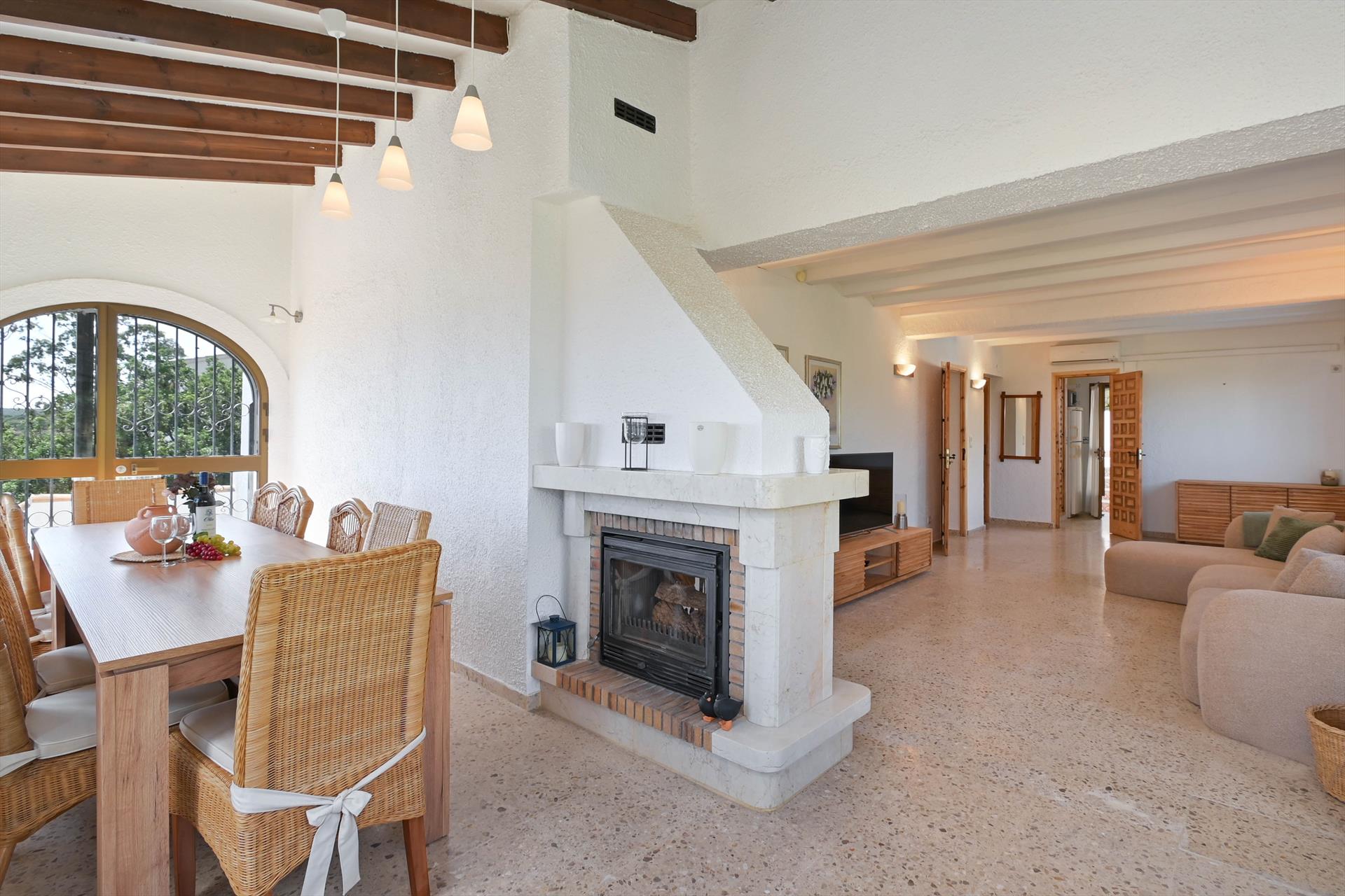 Prachtige en comfortabele villa met privézwembad in Denia, Costa Blanca, Spanje voor 8 personen. Het huis is gelegen in een woonwijk nabij het strand, dicht bij een tennisbaan, op 3 km van het strand Las Marinas in Denia en op 5 km van Javea. De villa beschikt over 4 slaapkamers en 3 badkamers, verdeeld over de hoofdaccommodatie en een apart gastenverblijf. De accommodatie biedt privacy, een tuin met bomen, prachtige uitzichten op de zee en mooie vergezichten op de bergen. Het comfort en de nabijheid van het strand, sportactiviteiten, uitgaansgelegenheden, bezienswaardigheden en cultuur maken deze villa een uitstekende keuze om uw vakantie in Spanje door te brengen met familie of vrienden. Interieur van de hoofdaccommodatie van de villa woonkamer met airconditioning en televisie eetkamer 3 slaapkamers en 2 badkamers kabeltelevisie (Smart TV) wasmachine in de badkamer De hoofdetage is alleen toegankelijk van buitenaf. Keuken van de hoofdaccommodatie keuken met elektrische kookplaat, elektrische oven, magnetron, vaatwasser, koelkast-vriezer, koffiezetapparaat, waterkoker, mixer, broodrooster en sapcentrifuge Slaapkamers en badkamers van de hoofdaccommodatie slaapkamer met airconditioning, kingsize bed (200 bij 200 cm) en en-suite badkamer slaapkamer met stapelbed slaapkamer met 2 eenpersoonsbedden (200 bij 90 cm) en-suite badkamer met enkele wastafel, douche en toilet badkamer met enkele wastafel, bad/douche combinatie en toilet Interieur van het gastenverblijf slaapkamer met airconditioning, 2 eenpersoonsbedden (200 bij 90 cm) en en-suite badkamer en-suite badkamer met enkele wastafel, douche en toilet Exterieur van de villa groot en omheind perceel niervormig privézwembad van 8m x 3m en 2m diep gemeenschappelijk zwembad tuin met bomen en tuinmeubilair met ligstoelen 2 overdekte terrassen buitenkeuken en barbecue buitendouche buiten zitgedeelte en buiten eetgedeelte 2 privé parkeerplaatsen Meer informatie dichtstbijzijnde stad: Javea (binnen 5 kilometer van de villa) dichtstbijzijnde rivier of oever: Middellandse Zee, Javea (binnen 3 kilometer van de villa) dichtstbijzijnde strand: Las Marinas, Denia (binnen 3 kilometer van de villa) dichtstbijzijnde haven: La Marina, Denia (binnen 3 kilometer van de villa) dichtstbijzijnde park: Montgo, Denia (binnen 3 kilometer van de villa) dichtstbijzijnde luchthaven: Alicante (binnen 100 kilometer van de villa) tweede dichtstbijzijnde luchthaven: Valencia (> 100 kilometer) huisdieren zijn niet toegestaan De accommodatie is zeer geschikt voor gezinnen met kinderen Privé faciliteiten en diensten inbegrepen in de huurprijs internet (WiFi) strijkijzer en strijkplank bedlinnen en handdoeken receptieservice en 24-uurs noodservice luchtverwarming en met airconditioning Gemeenschappelijke faciliteiten/diensten tennisbaan Privé faciliteiten en diensten tegen extra kosten extra bed en kinderbedje (op aanvraag) Ontspanning en vrijetijdsbesteding voor uw vakantie in Denia, Costa Blanca bar, promenade (Las Marinas en Denia) (binnen 5 kilometer van het huis) Bezienswaardigheden en cultuur in Denia, Costa Blanca museum (Histórico de Denia), kerk (Portal de la Vila, Denia), kasteel (Portal de la Vila, Denia), monument (Pueblo de Denia), architectonisch gebouw (Centro de Denia) en historische plaats (Histórico de Denia) (binnen 5 kilometer van de accommodatie) ruïne (Molinos de Viento en Javea) (binnen 10 kilometer van de accommodatie) Sport tennis (binnen 1000 meter van de villa) wandelen, mountainbiken, fietsen, klimmen, kanoën, kajakken, vissen, duiken, snorkelen, surfen, windsurfen en waterskiën (binnen 5 kilometer van de villa) golf (La Sella Golf Club, Denia) en paardrijden (binnen 10 kilometer van de villa)
