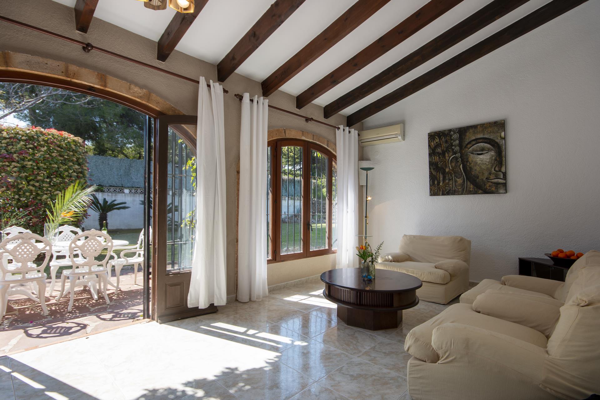 Groot en comfortabel vakantiehuis met privé zwembad in Javea, Costa Blanca, Spanje voor 10 personen. De woning ligt in een residentiële omgeving en op 2 km van het strand van El Arenal, Javea.De...